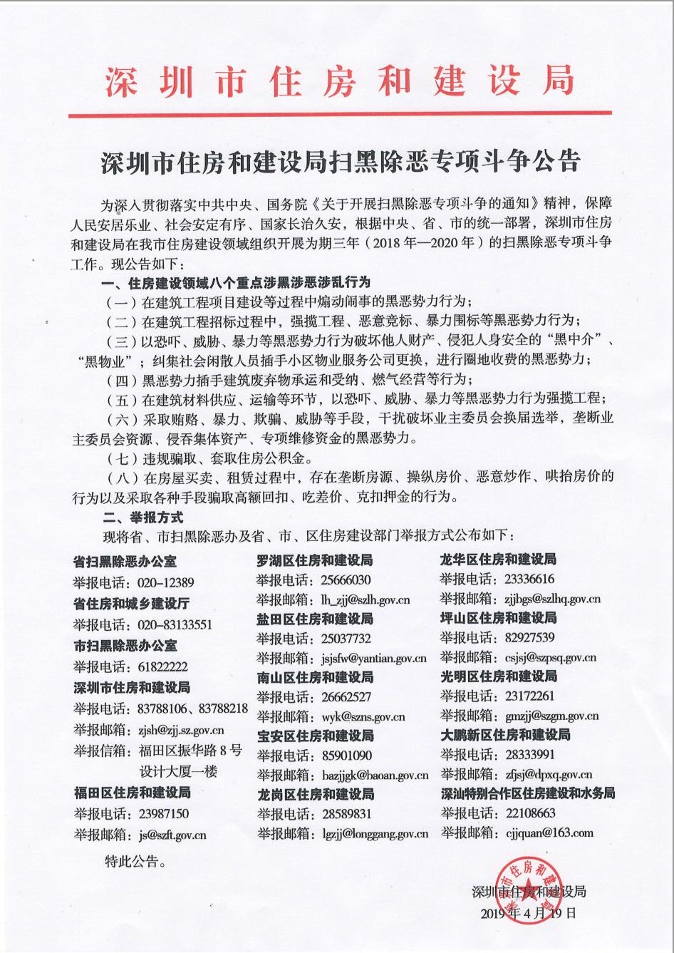 我司響應(yīng)《深圳市住房和建設(shè)局掃黑除惡專項斗爭公告》